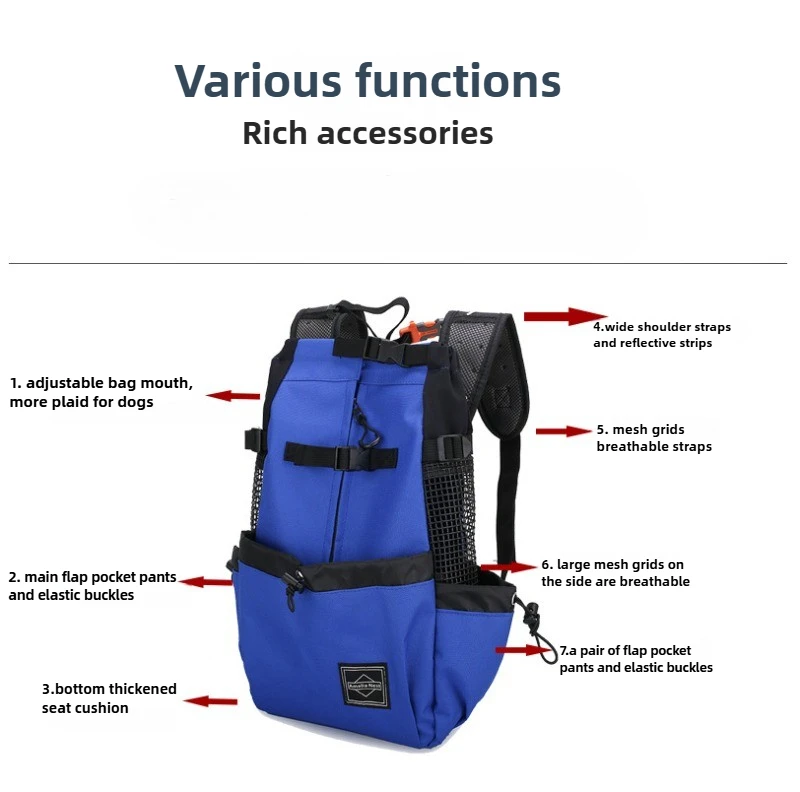 ● The dog backpack has a built-in safety buckle, and the thickened seat cushion makes the dog sit comfortably
